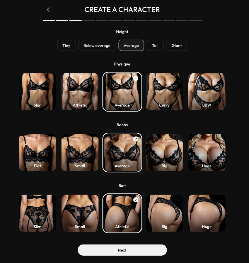 Chaque session commence par un simple échange et la relation prend vite une tournure plus chaude. Vous orientez chaque discussion vers ce que vous voulez : sexting, roleplay, mise en scène érotique. En retour, l'IA génère des images sexy, des nudes ou des vidéos dans le style de votre choix, réaliste, anime ou hentai.